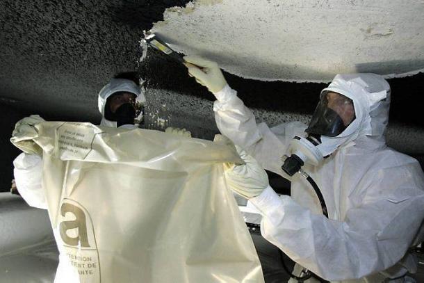 → Installation de zones étanches et protection des abords (bâches, signalétique, accès limité).